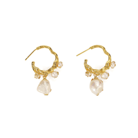 פליז בציר 18k מצופה זהב פרל עגילי טבעי הבארוק חישוק עגיל תכשיטי נשים